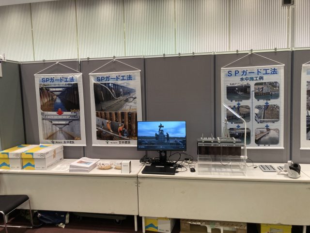 今回も当社PRブースにて、「SPガード工法(鋼矢板水路補修)」を展示させていただきました。