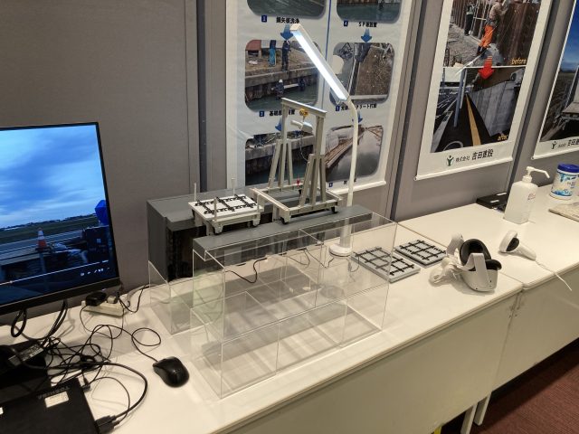 ブースでは、スライドパネルによる施工・竣工写真の展示のほか、施工映像の上映や模型を使用した施工方法の説明をさせていただきました。