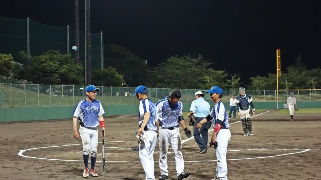午後7時、薄暗くなってライトが点灯した頃に試合開始となりました。