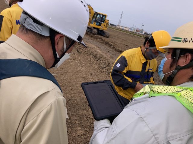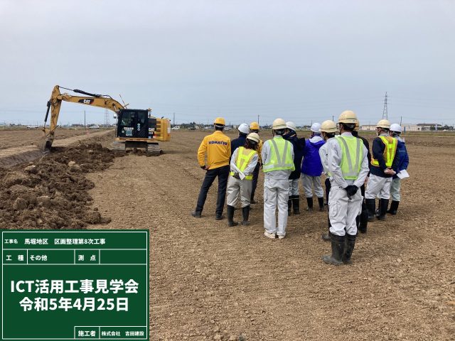 4月25日(火)14:00~16:00の日程で馬堀地区 区画整理第8次工事の現場内にてICT活用の見学会を開催いたしました。