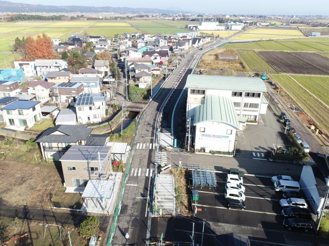 ↑歩道舗装工事(始点より)
