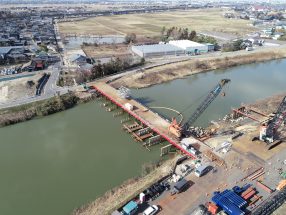 10月から始動し、塩俵橋を撤去するための重機足場となる仮桟橋を施工しています。11月も引き続き仮桟橋の施工を行います。