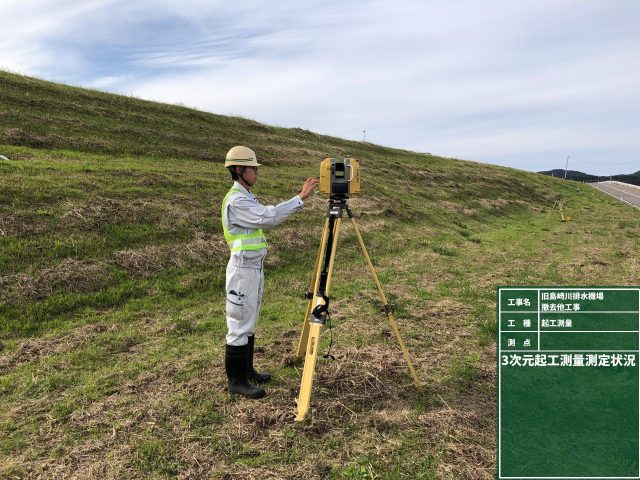 地上型レーザースキャナー(TLS)による起工測量測定状況